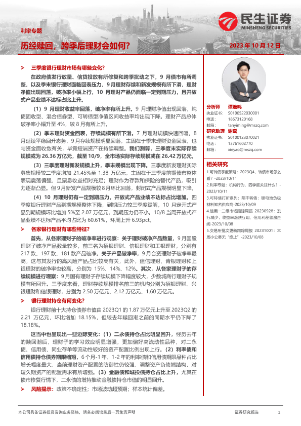 【民生证券】【20231012】利率专题:历经赎回,跨季后理财会如何?-21页
