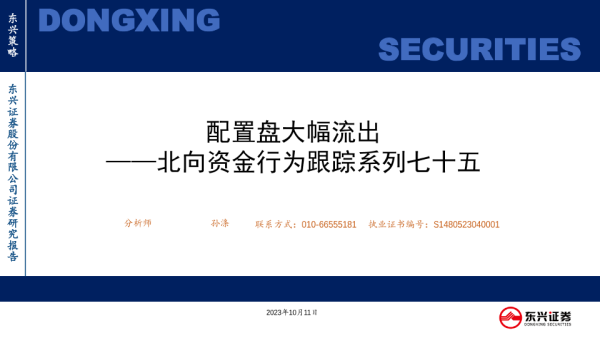 【东兴证券】【20231011】北向资金行为跟踪系列七十五:配置盘大幅流出-25页