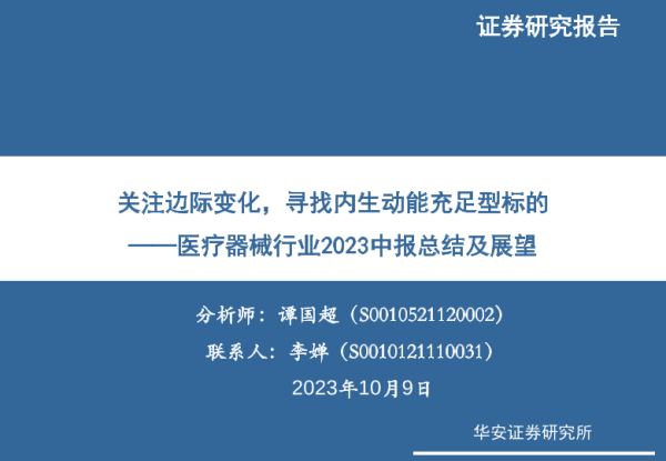 【华安证券】【20231009】医疗器械行业2023中报总结及展望:关注边际变化,寻找内生动能充足型标的-40页
