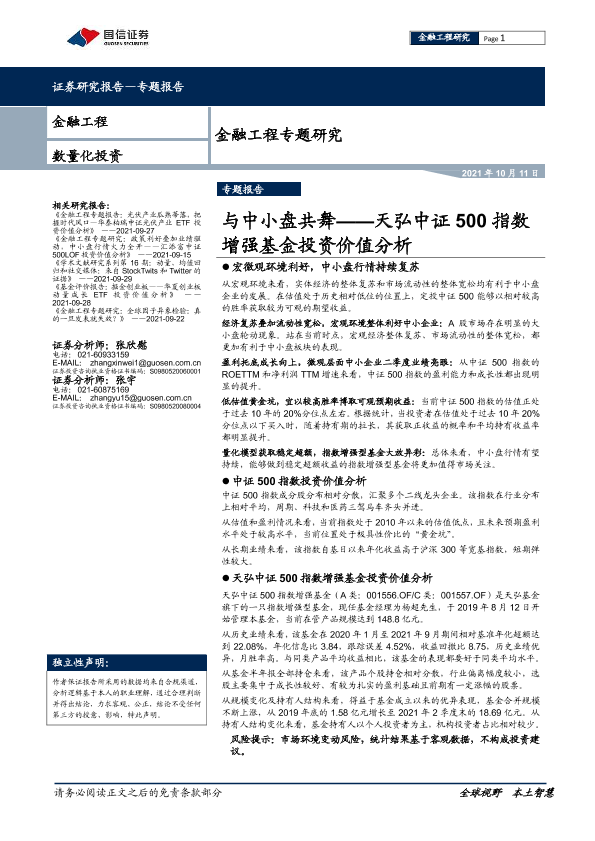 【国信证券】【20211011】天弘中证500指数增强基金投资价值分析:与中小盘共舞-20页