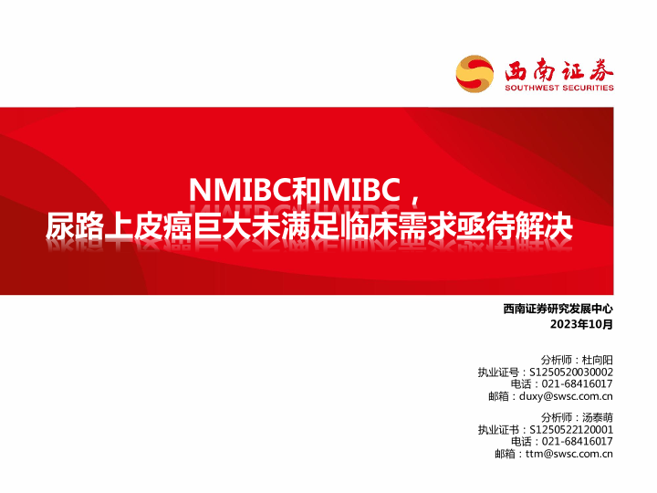 【西南证券】【20231011】医药行业:NMIBC和MIBC,尿路上皮癌巨大未满足临床需求亟待解决-55页