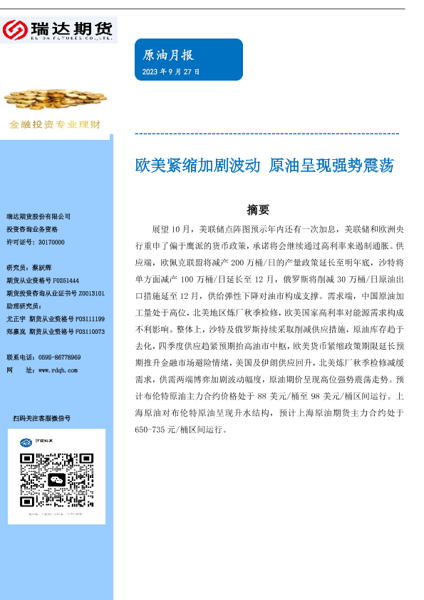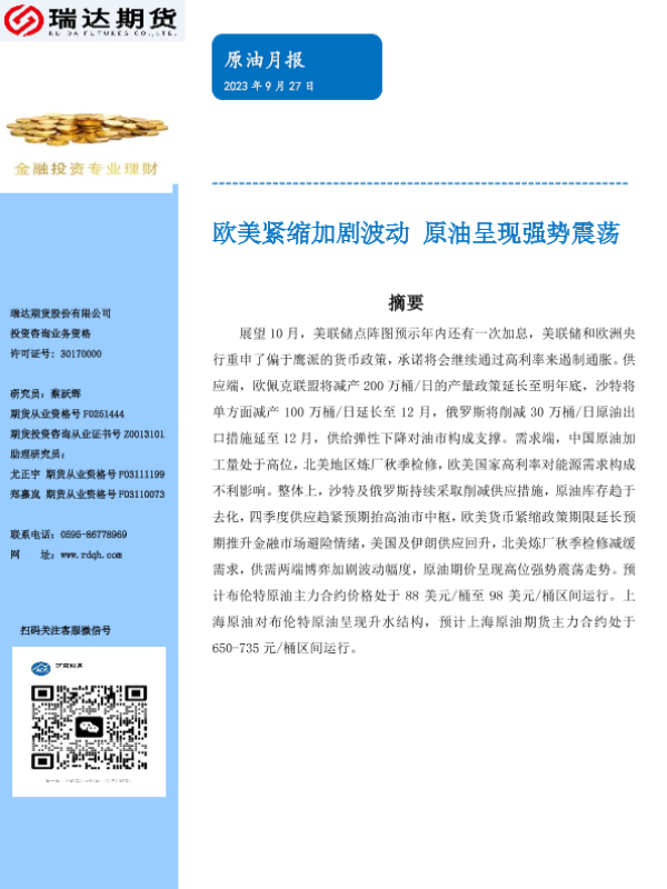 【瑞达期货】【20230927】原油月报:欧美紧缩加剧波动,原油呈现强势震荡-21页
