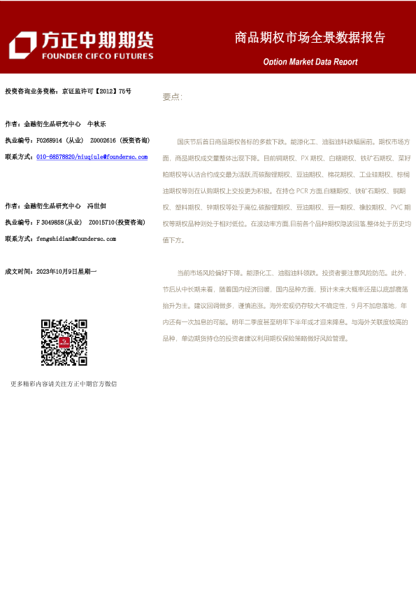 【方正中期期货】【20231009】商品期权市场全景数据报告-107页