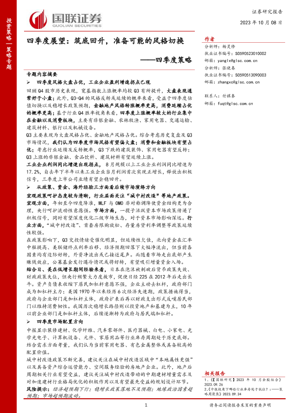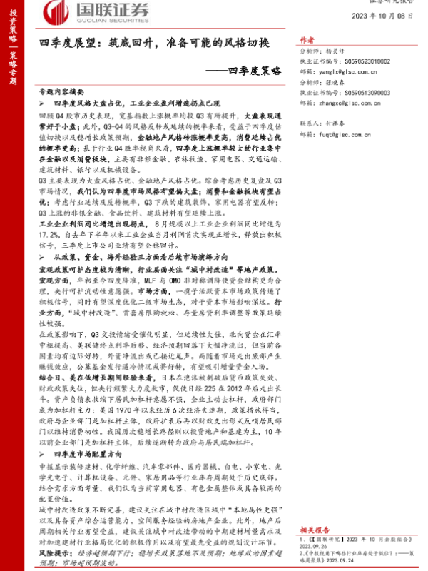 【国联证券】【20231008】四季度策略:四季度展望,筑底回升,准备可能的风格切换-44页