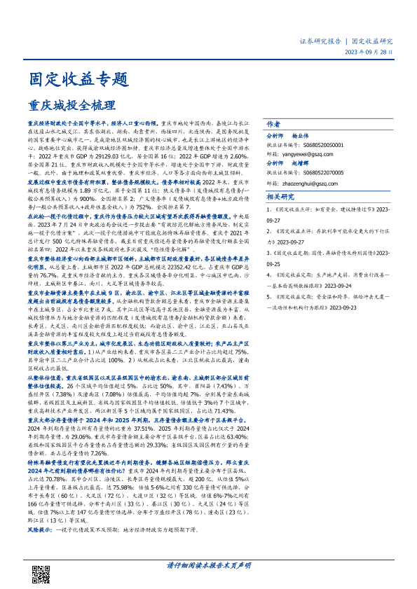 【国盛证券】【20230928】固定收益专题:重庆城投全梳理-62页