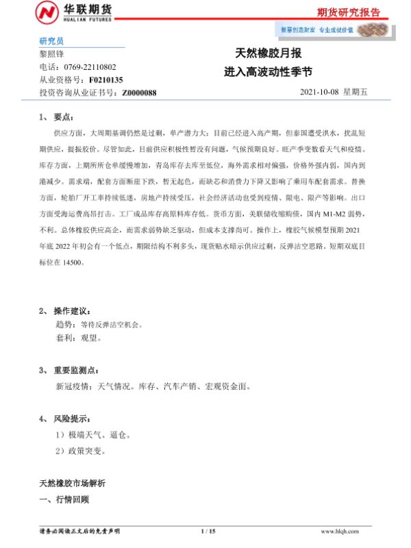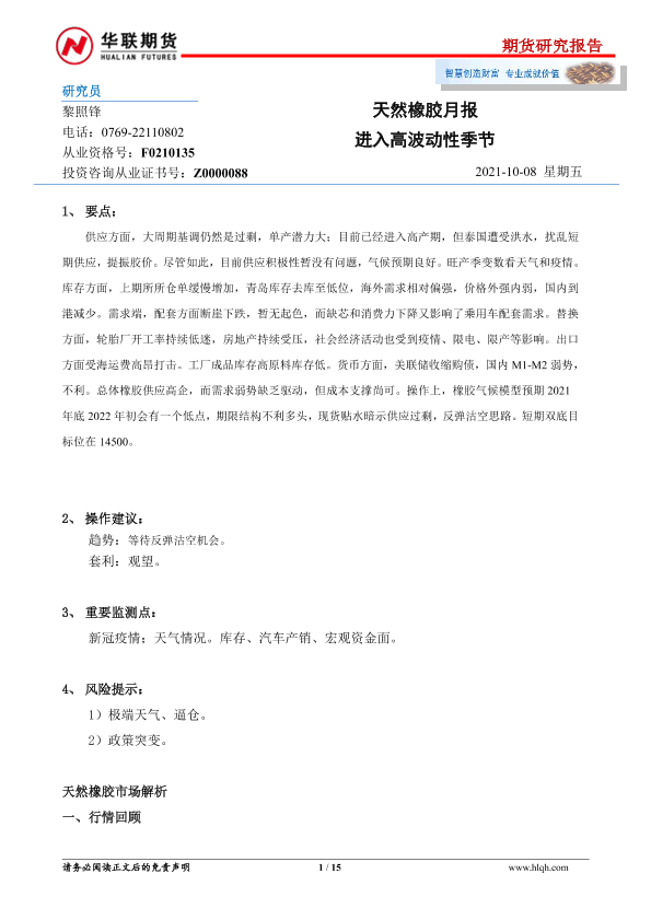 【华联期货】【20211008】天然橡胶月报:进入高波动性季节-15页