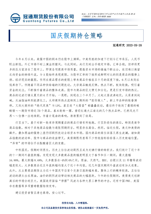 【冠通期货】【20230928】国庆假期持仓策略-32页