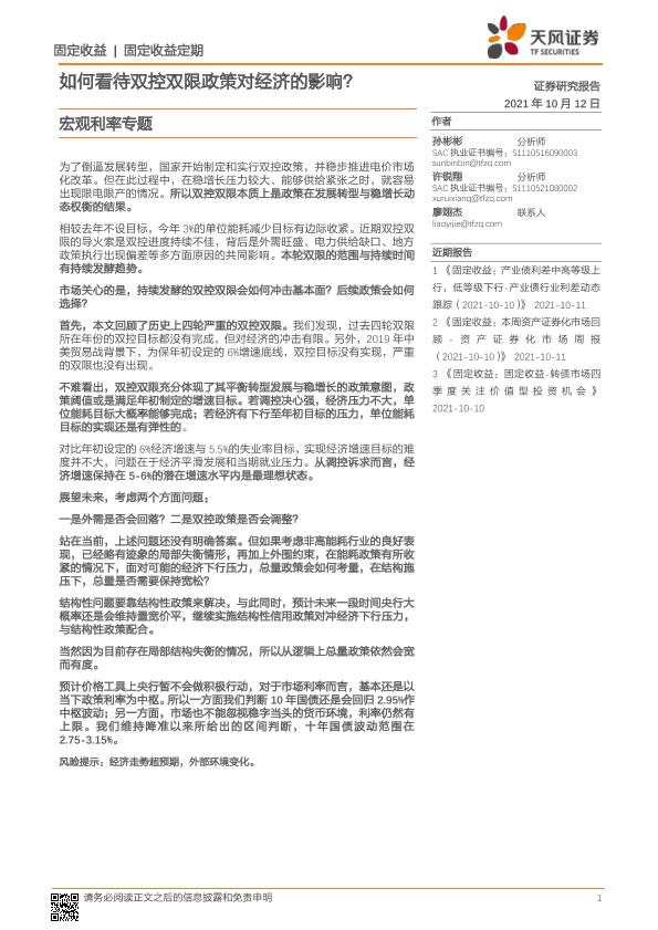 【天风证券】【20211012】宏观利率专题:如何看待双控双限政策对经济的影响?-16页