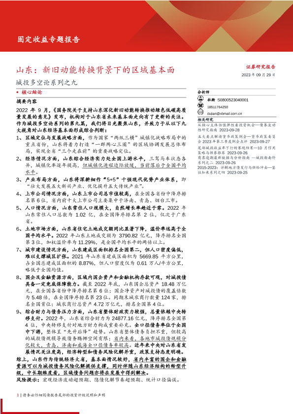 【西部证券】【20230929】城投多空论系列之九:山东,新旧动能转换背景下的区域基本面-25页