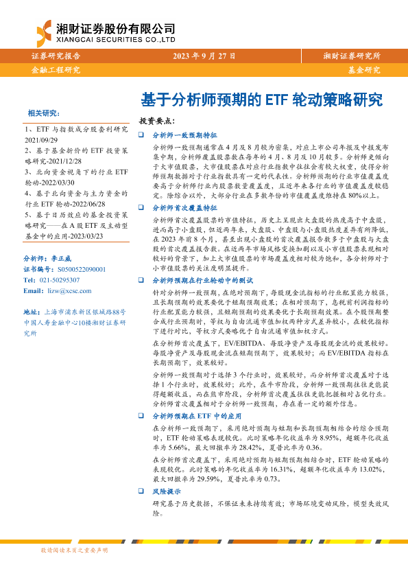 【湘财证券】【20230927】基于分析师预期的ETF轮动策略研究-26页