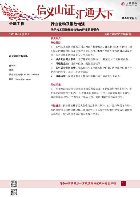 【山西证券】【20231012】基于技术面指标分位数的行业配置研究:行业轮动及指数增强-32页