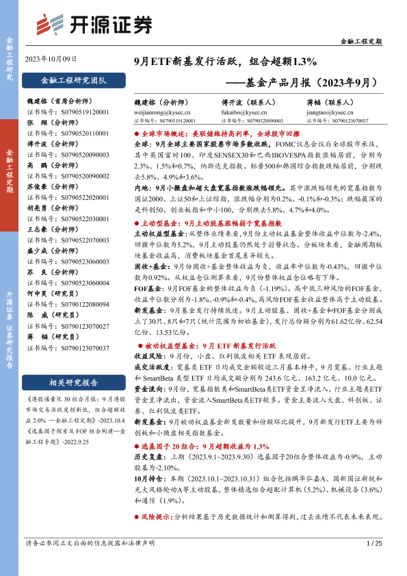 【开源证券】【20231009】基金产品月报(2023年9月):9月ETF新基发行活跃,组合超额1.3%-25页