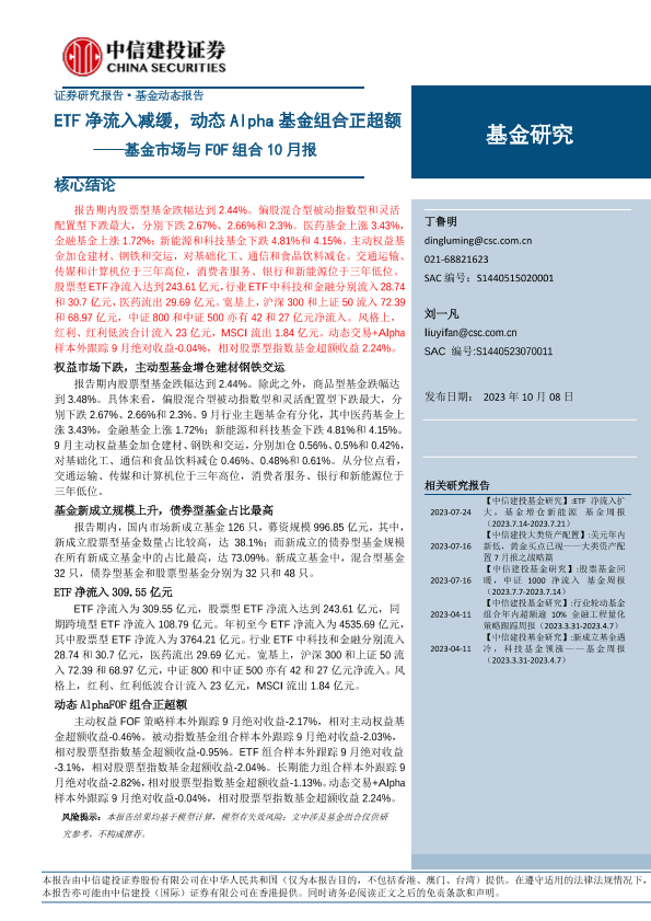 【中信建投证券】【20231008】基金市场与FOF组合10月报:ETF净流入减缓,动态Alpha基金组合正超额-24页