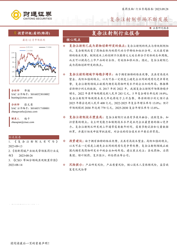 【财通证券】【20230928】复杂注射剂行业报告:复杂注射剂市场不断发展-20页