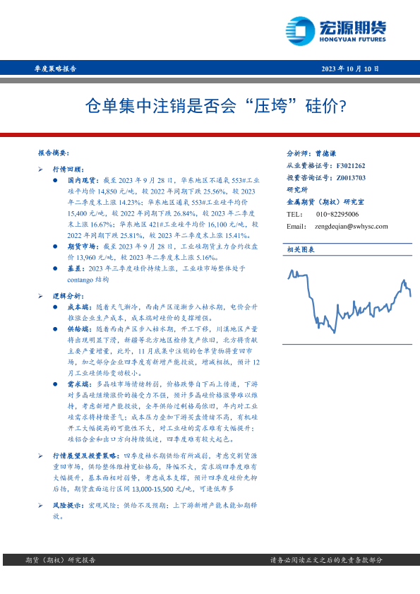 【宏源期货】【20231010】季度策略报告:仓单集中注销是否会“压垮”硅价?-22页
