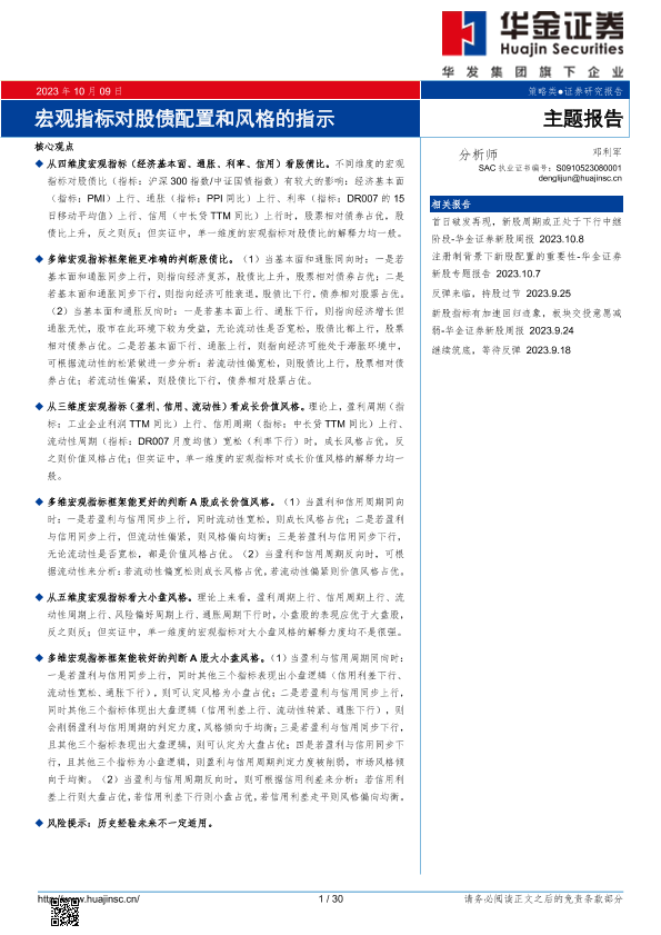 【华金证券】【20231009】宏观指标对股债配置和风格的指示-30页