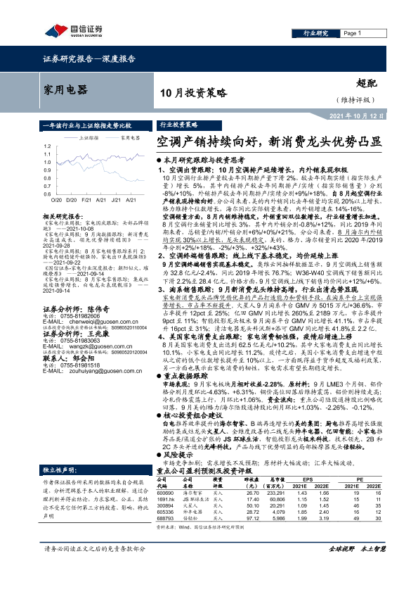 【国信证券】【20211012】家用电器行业10月投资策略:空调产销持续向好,新消费龙头优势凸显-16页