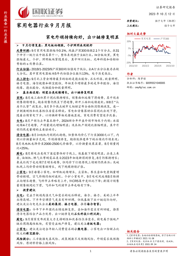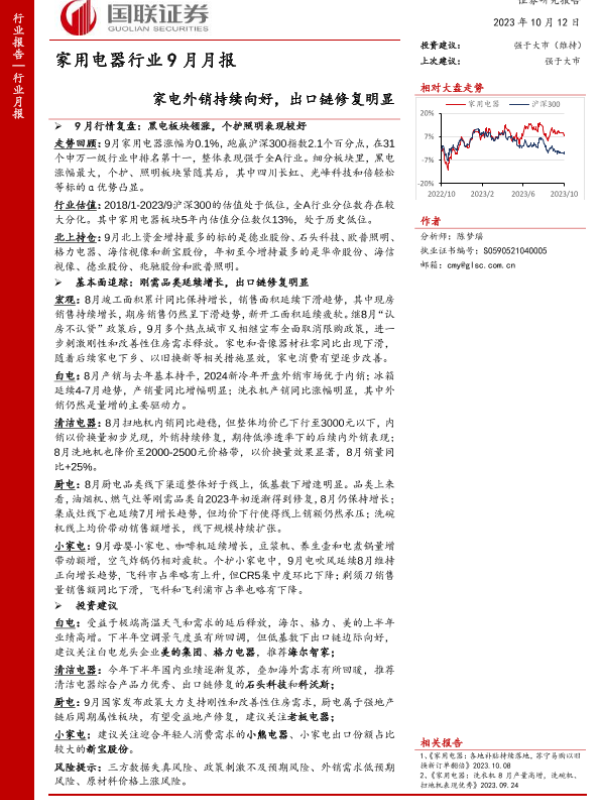 【国联证券】【20231012】家用电器行业9月月报:家电外销持续向好,出口链修复明显-20页