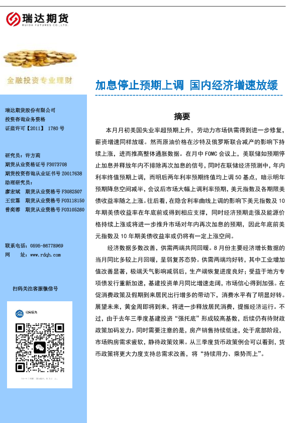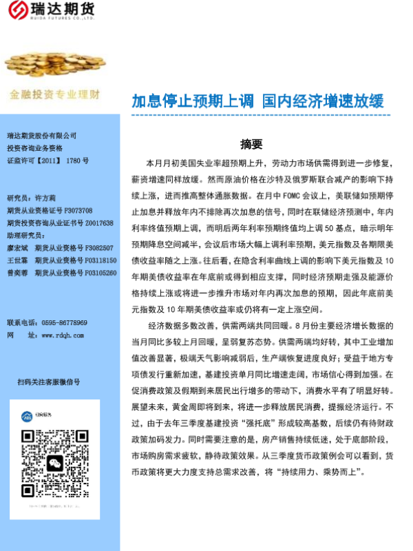 【瑞达期货】【20231011】市场研报:加息停止预期上调,国内经济增速放缓-41页