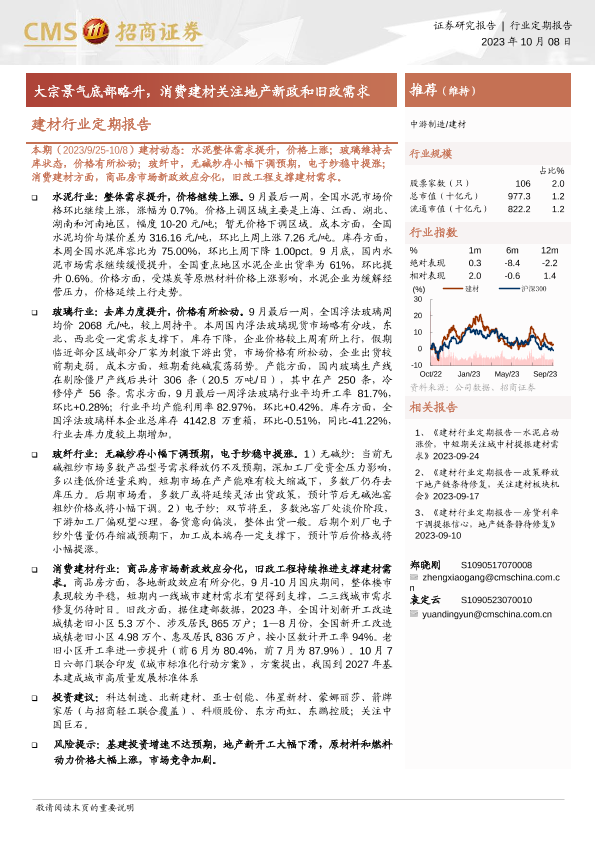 【海通证券】【20231008】建材行业定期报告:大宗景气底部略升,消费建材关注地产新政和旧改需求-25页