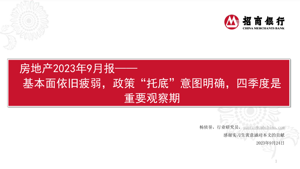 【招商银行】【20230924】房地产行业2023年9月报:基本面依旧疲弱,政策“托底”意图明确,四季度是重要观察期-23页