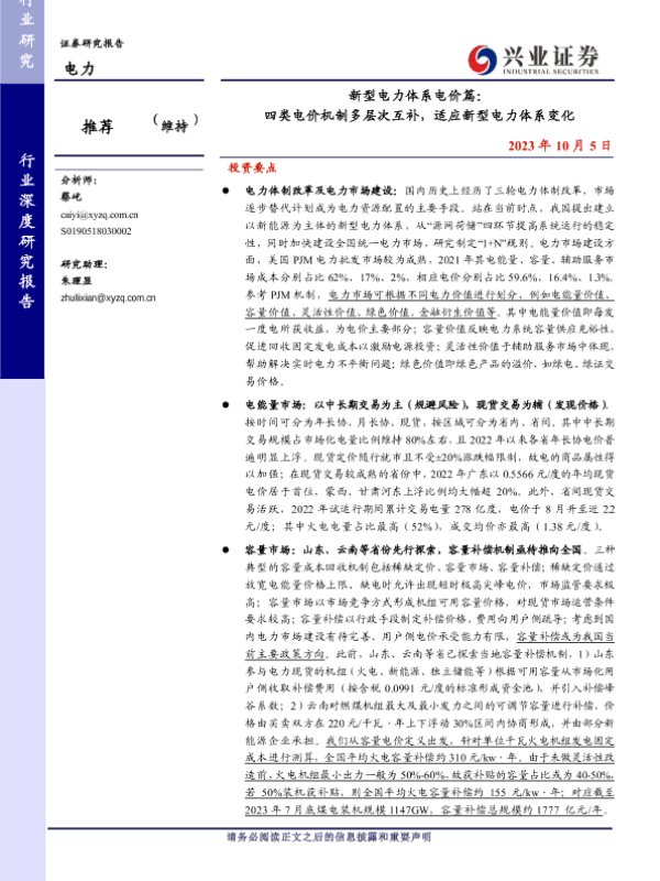 【兴业证券】【20231005】新型电力体系电价篇:四类电价机制多层次互补,适应新型电力体系变化-52页