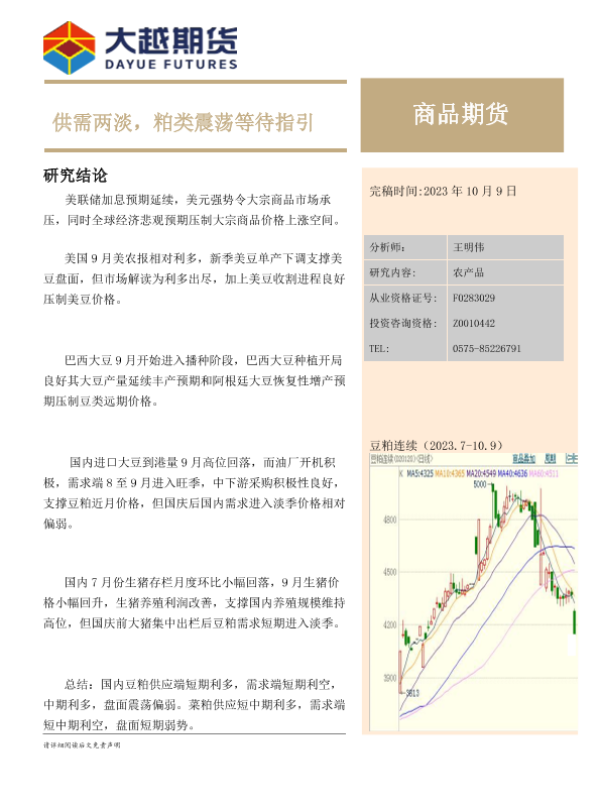 【大越期货】【20231009】月度报告:供需两淡,粕类震荡等待指引-21页