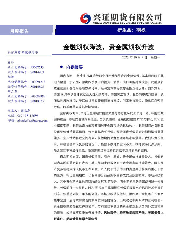 【兴证期货】【20231009】期权月度报告:金融期权降波,贵金属期权升波-21页