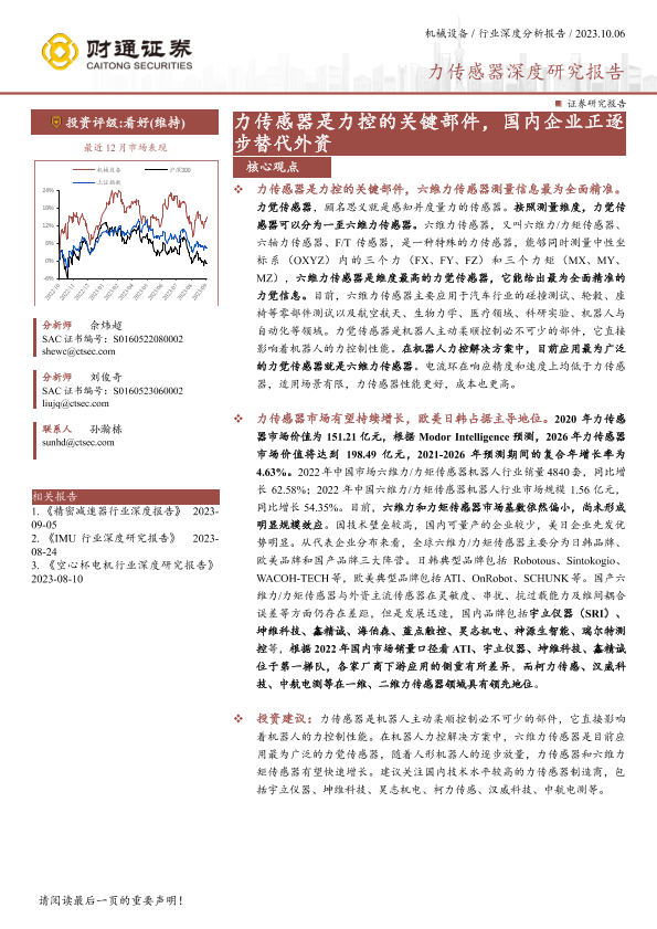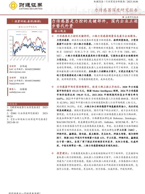 【财通证券】【20231006】机械设备行业力传感器深度研究报告:力传感器是力控的关键部件,国内企业正逐步替代外资-27页