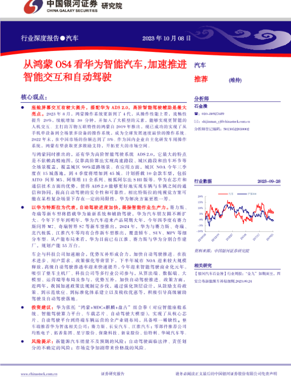 【银河证券】【20231008】汽车行业深度报告:从鸿蒙OS4看华为智能汽车,加速推进智能交互和自动驾驶-30页