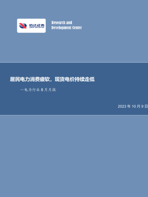 【信达证券】【20231009】电力行业8月月报:居民电力消费疲软,现货电价持续走低-26页