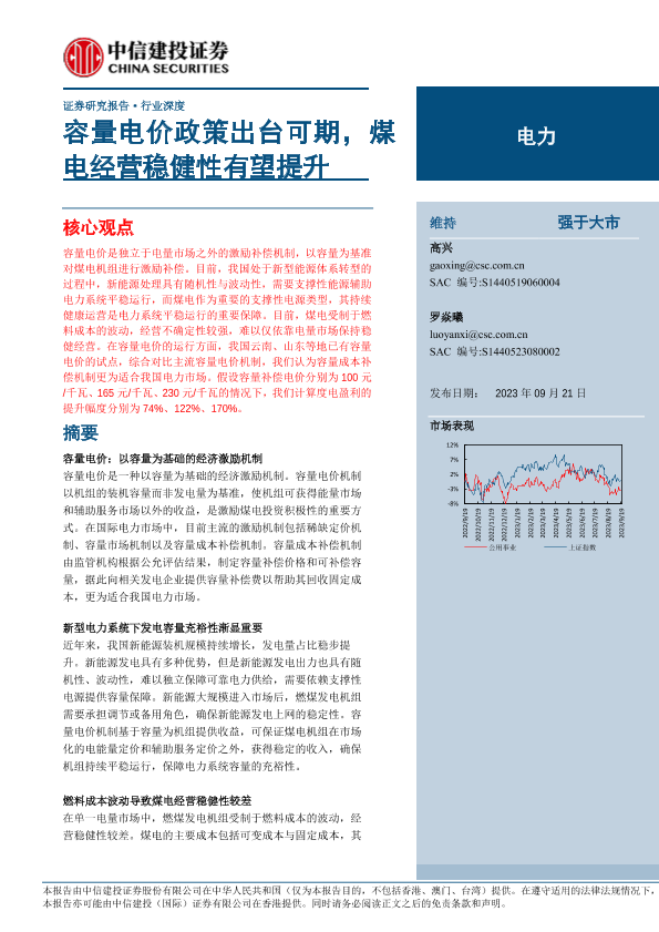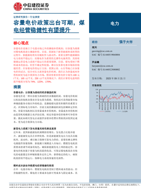 【中信建投证券】【20230921】电力行业:容量电价政策出台可期,煤电经营稳健性有望提升-17页