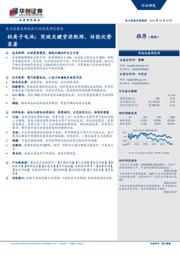 【华创证券】【20231009】电力设备及新能源行业深度研究报告:钠离子电池,突破关键资源瓶颈,性能优势显著-34页
