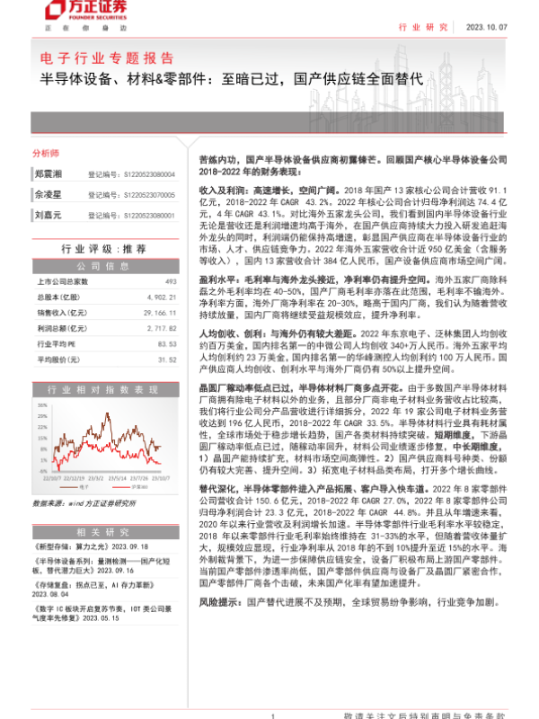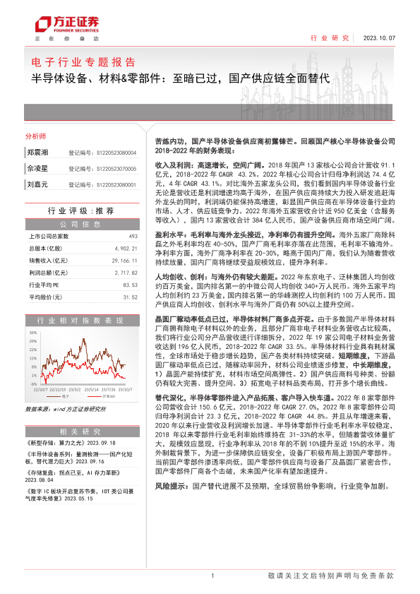 【方正证券】【20231007】电子行业专题报告:半导体设备、材料&零部件,至暗已过,国产供应链全面替代-26页