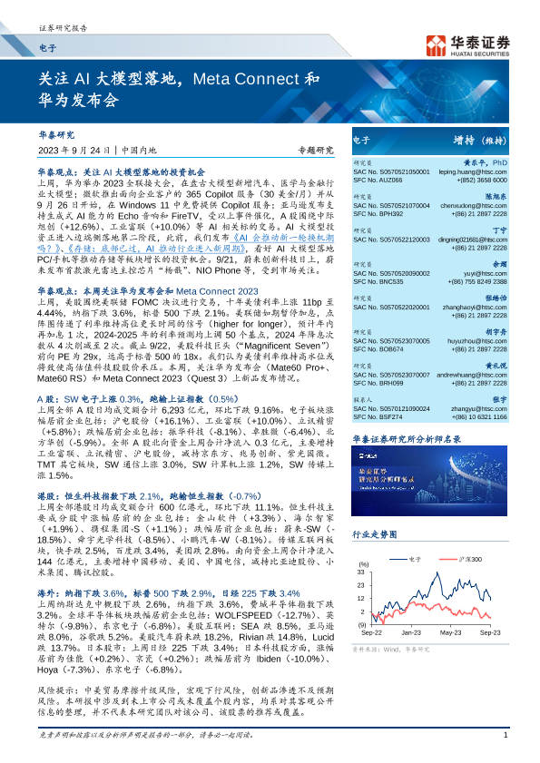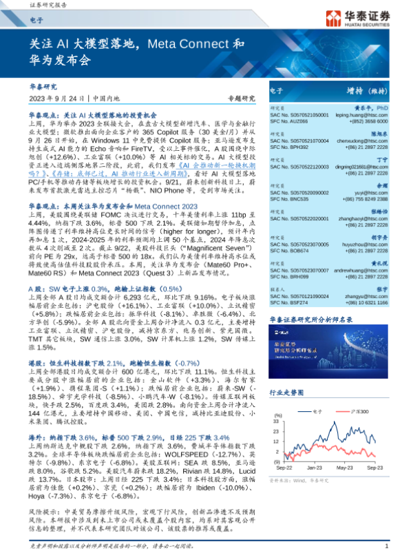 【华泰证券】【20230924】电子行业专题研究:关注AI大模型落地,Meta Connect和华为发布会-45页