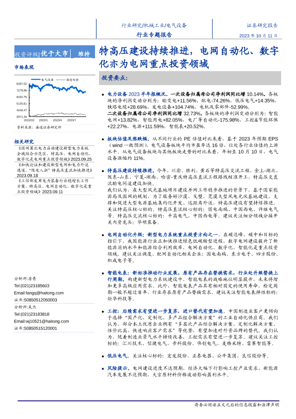 【海通证券】【20231011】电气设备行业专题报告:特高压建设持续推进,电网自动化、数字化亦为电网重点投资领域-25页