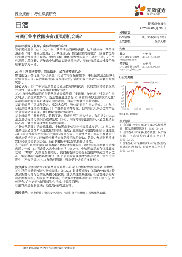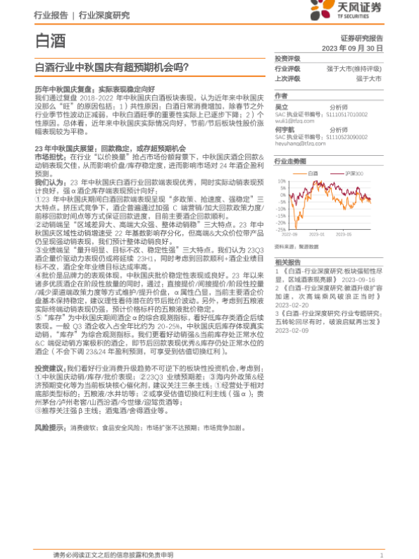 【天风证券】【20230930】白酒行业中秋国庆有超预期机会吗?-18页