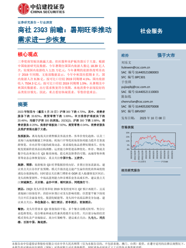 【中信建投证券】【20231008】社会服务行业商社23Q3前瞻:暑期旺季推动需求进一步恢复-34页
