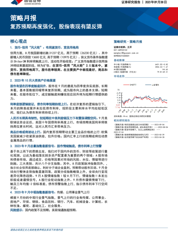【国信证券】【20230928】策略月报:复苏预期再度强化,股指表现有望反弹-25页