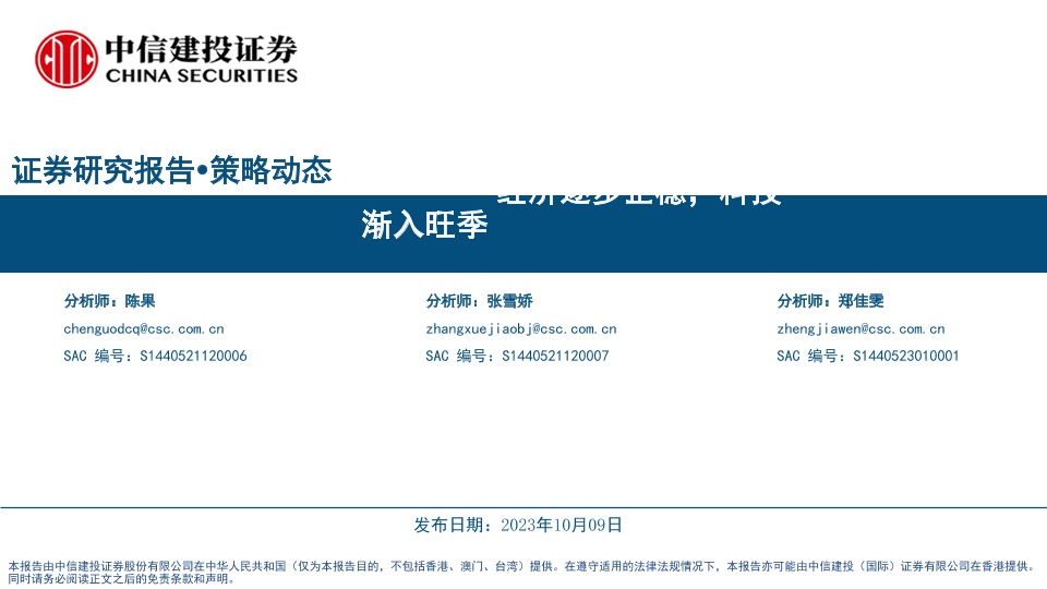 【中信建投证券】【20231009】经济逐步企稳,科技渐入旺季-20231009-39页