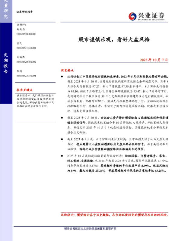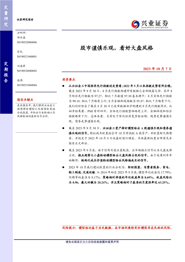 【兴业证券】【20231007】股市谨慎乐观,看好大盘风格-26页