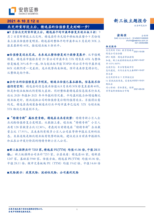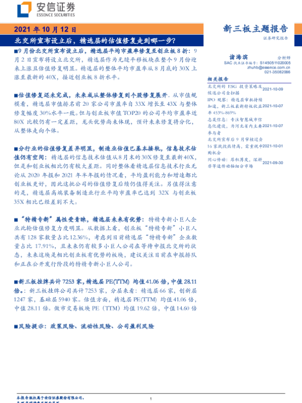 【安信证券】【20211012】新三板主题报告:北交所宣布设立后,精选层的估值修复走到哪一步?-18页