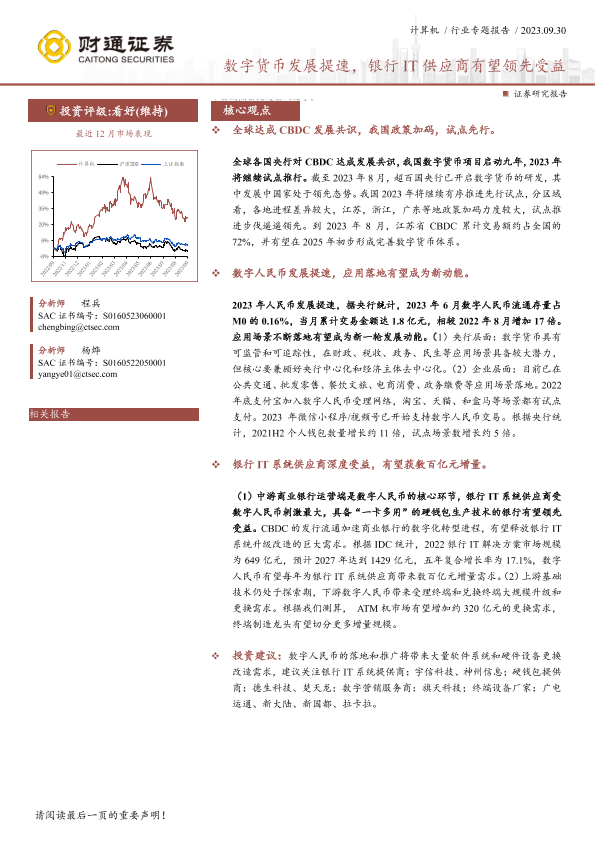 【财通证券】【20230930】计算机行业专题报告:数字货币发展提速,银行IT供应商有望领先受益-23页