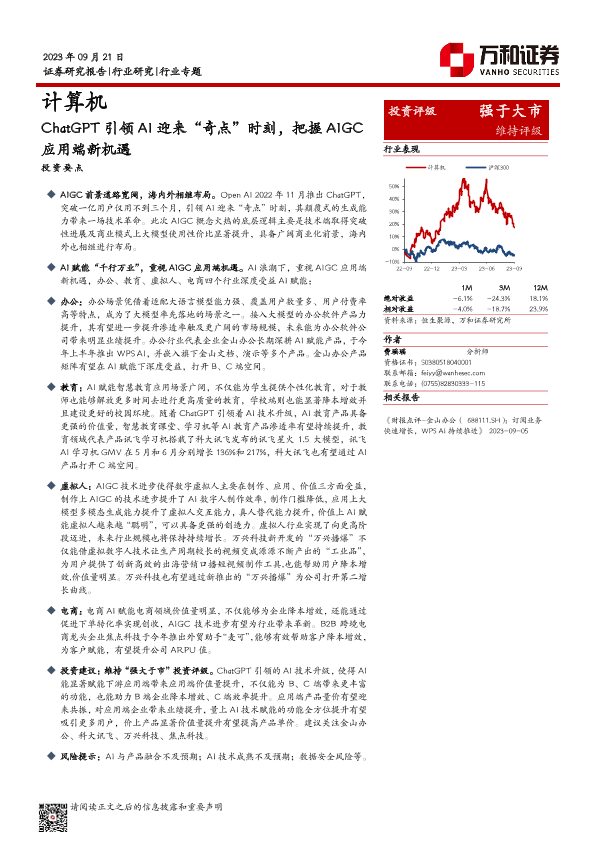【万和证券】【20230921】计算机行业专题研究:ChatGPT引领AI迎来“奇点”,把握AIGC应用端新机遇-18页