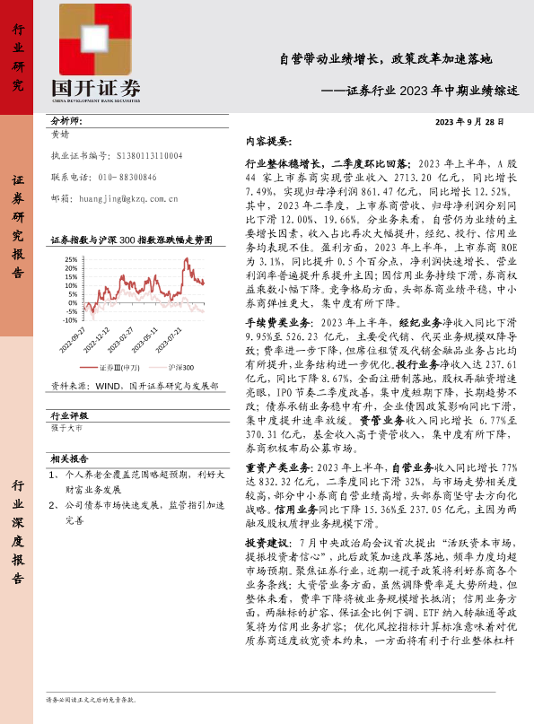 【国开证券】【20230928】证券行业2023年中期业绩综述:自营带动业绩增长,政策改革加速落地-25页