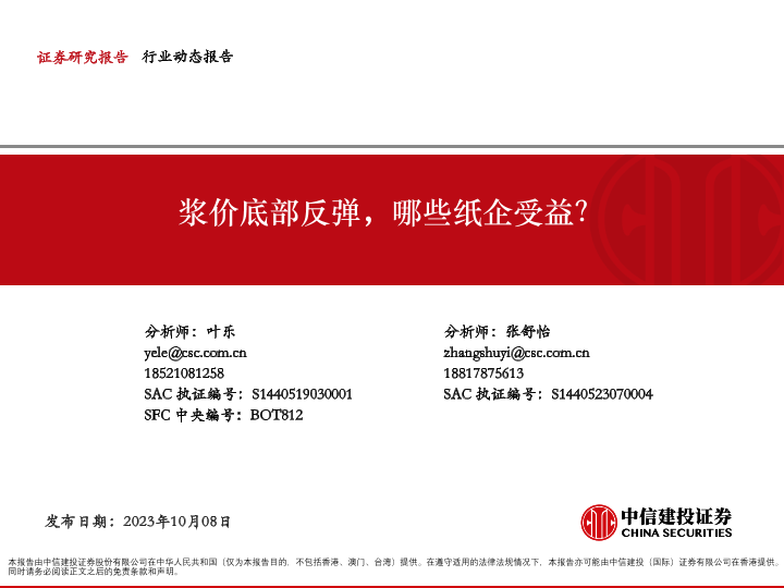 【中信建投证券】【20231008】轻工造纸行业:浆价底部反弹,哪些纸企受益?-25页