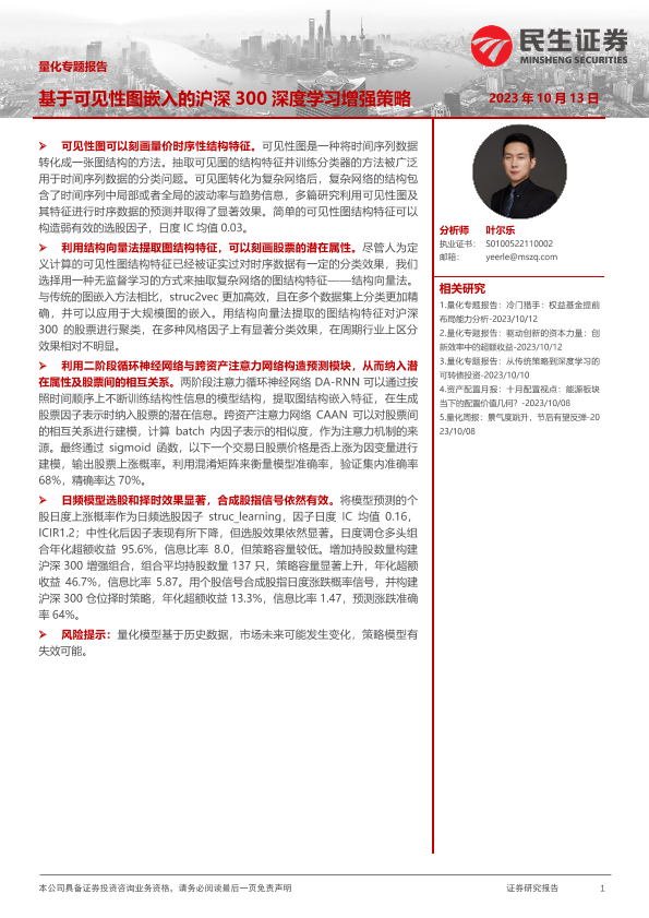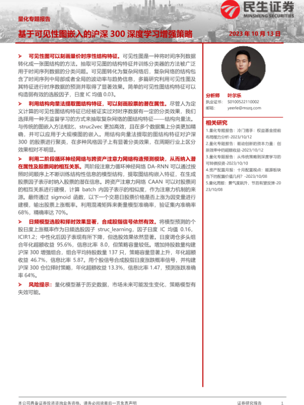 【民生证券】【20231013】基于可见性图嵌入的沪深300深度学习增强策略-26页