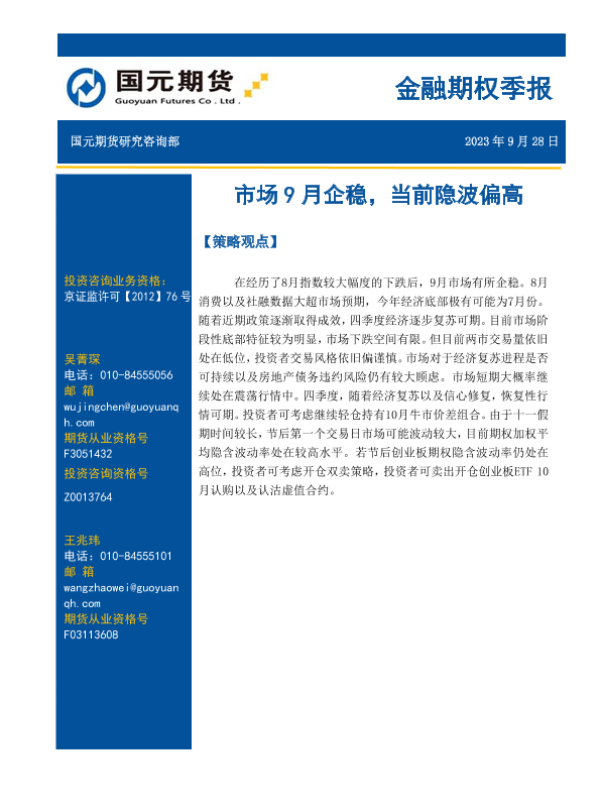 【国元期货】【20230928】金融期权季报:市场9月企稳,当前隐波偏高-21页