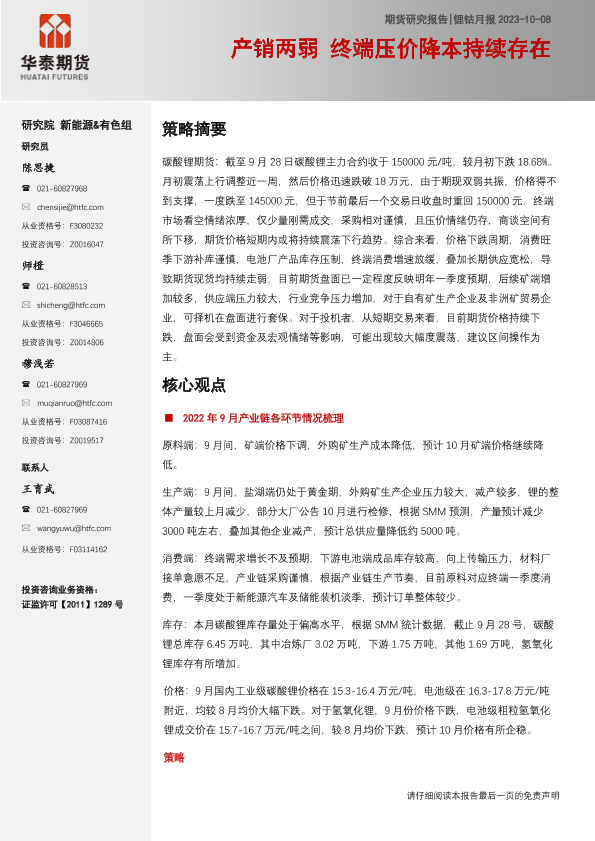 【华泰期货】【20231008】钴锂月报:产销两弱,终端压价降本持续存在-24页