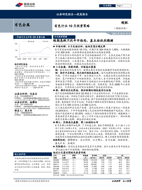 【国信证券】【20211011】有色行业10月投资策略:短期急跌不改牛市格局,基本面依然稳健-25页